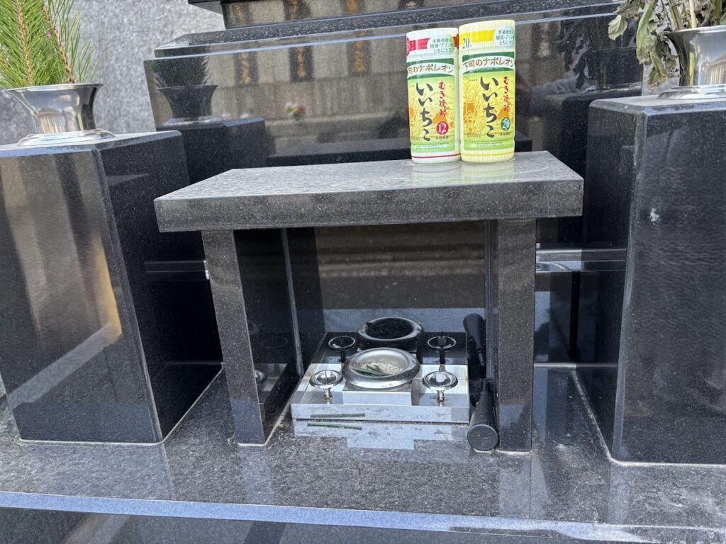 上が平らなタイプを選べばこのようにお供え物を置く場所にもなります。
